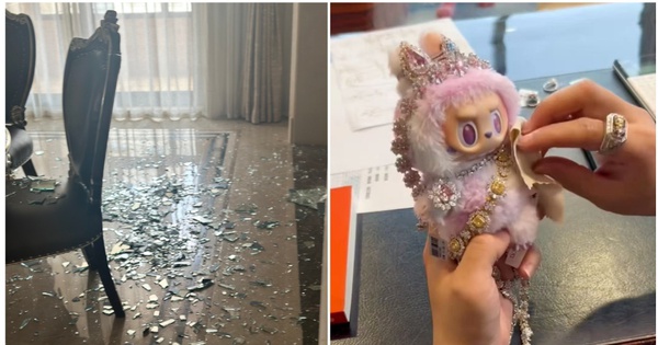 Chiếc đèn trần có giá trị lớn cũng bị vỡ tan sau cú ném